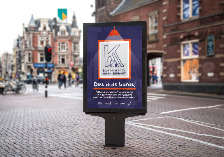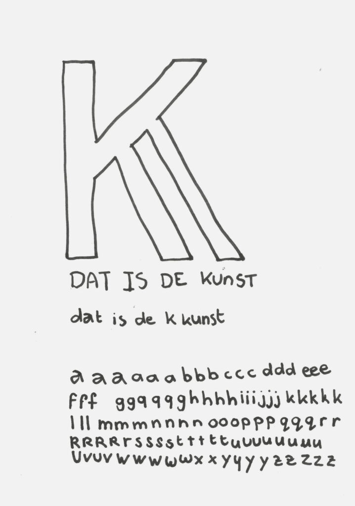 Voor de algehele stijl begon ik op papier, speelde met een variant van de ‘K’ als logo en creëerde een eigen lettertype, om de campagne een speels en laagdrempelig uiterlijk te geven. Dit heb ik ingescand en gedigitaliseerd. Mocht je het lettertype leuk vinden, de download vind je hier.