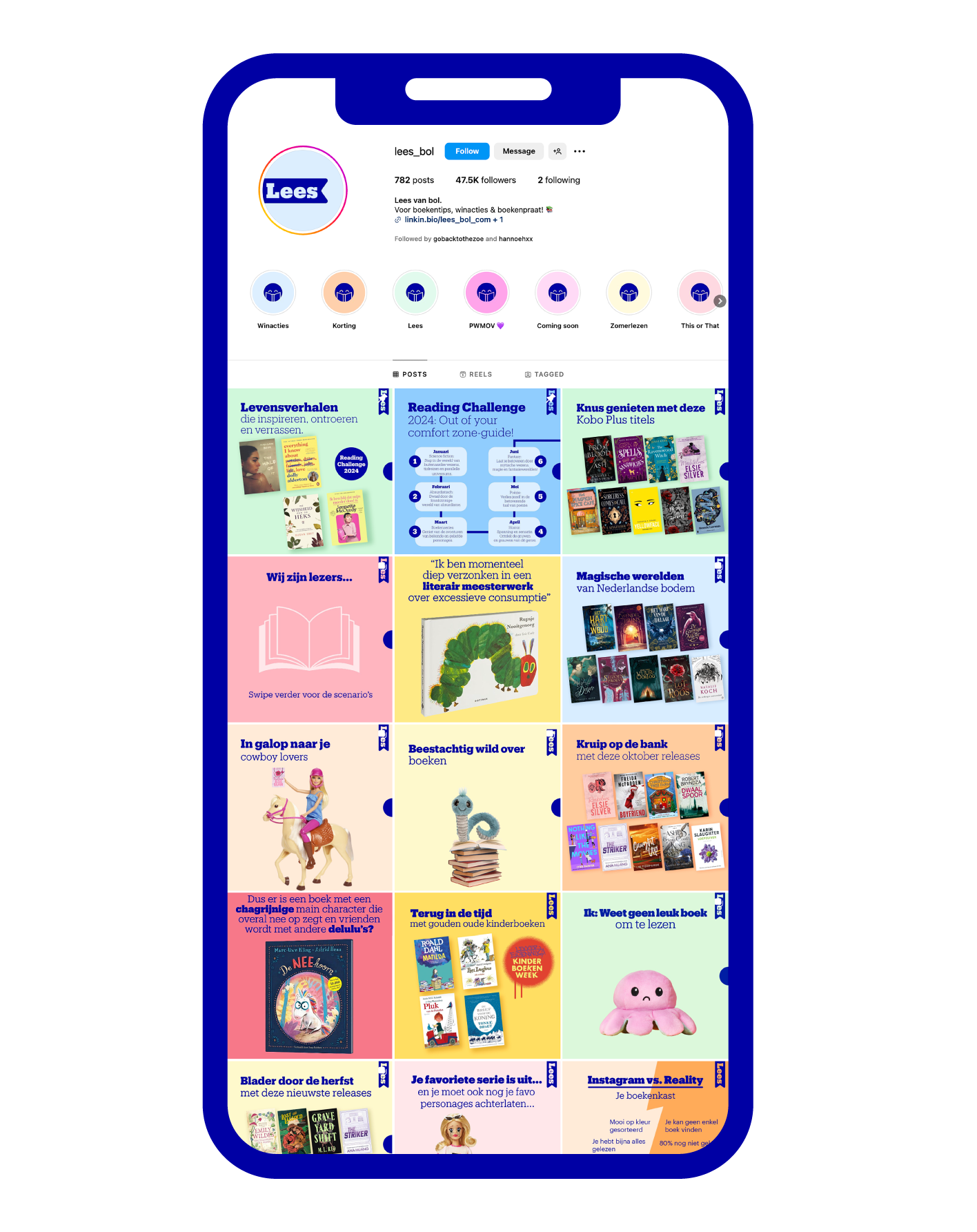 Als voormalig boekenwinkel werd het hoog tijd om meer aandacht te besteden aan deze ondertussen minder belichte kant van de webshop. lees_bol is het social media platform voor het promoten van de boeken die op bol verkocht worden.
